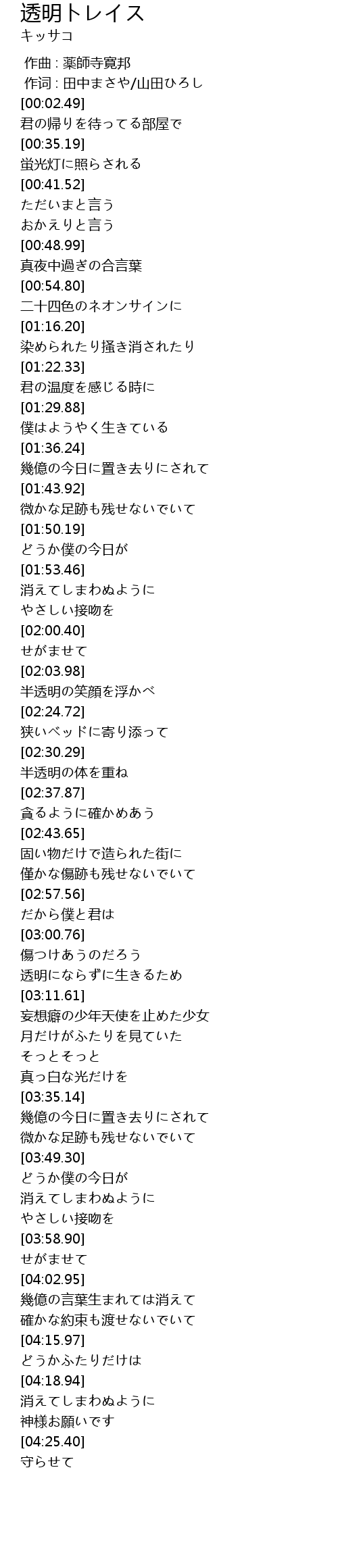 | [02:32.38] | 半透明の体を重ね |