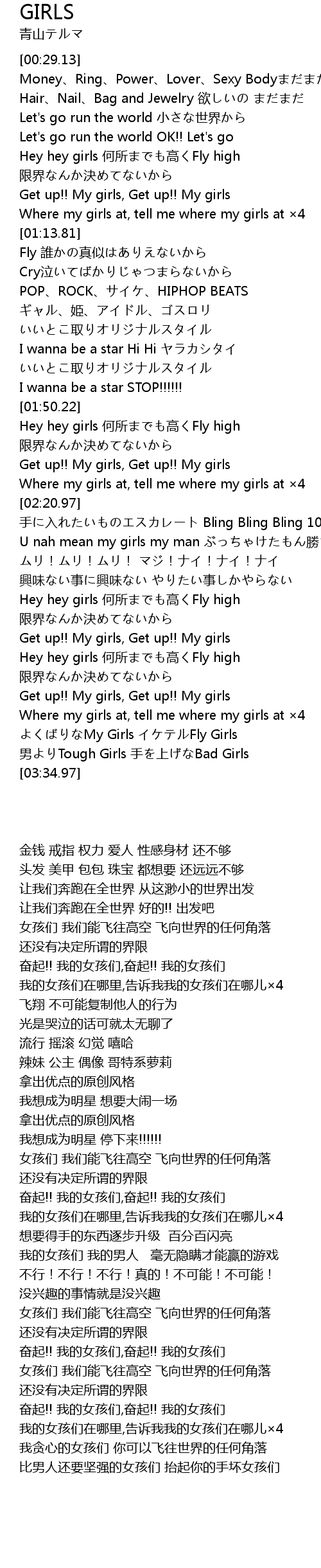 | [03:03.06] | Get up!! My girls, Get up!! My girls |
