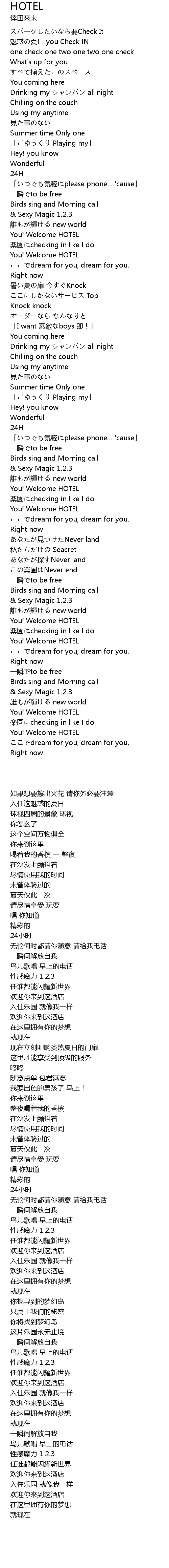 | [03:02.590] | You! Welcome HOTEL |
