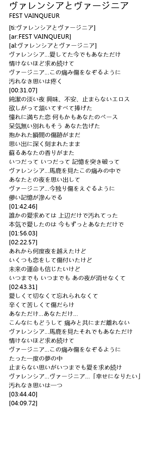 | [03:32.15] | ヴァレンシア…ヴァージニア…「幸せになりたい」 |