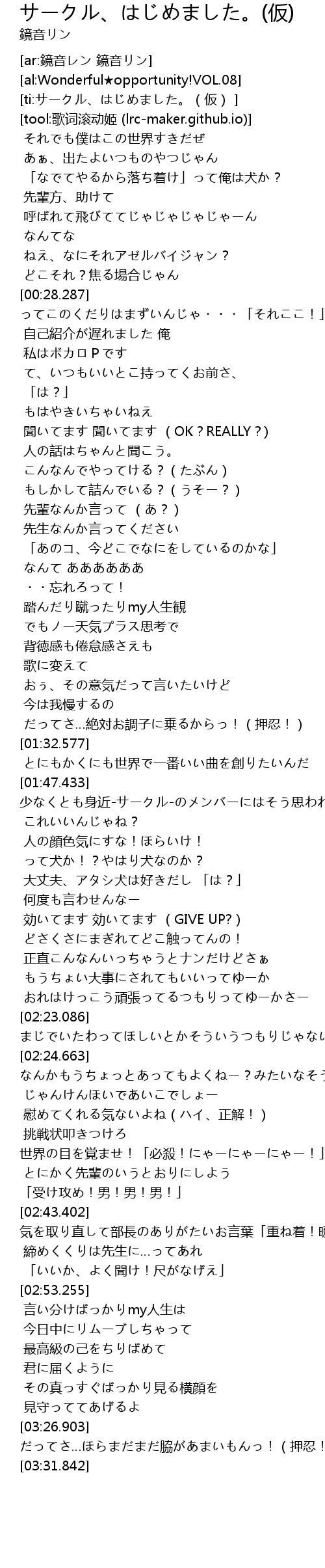 | [ti:サークル、はじめました。(仮) ] | |