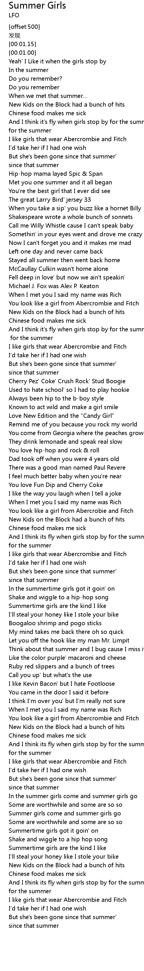 | [00:24.02] | And I think it's fly when girls stop by for the summer' |