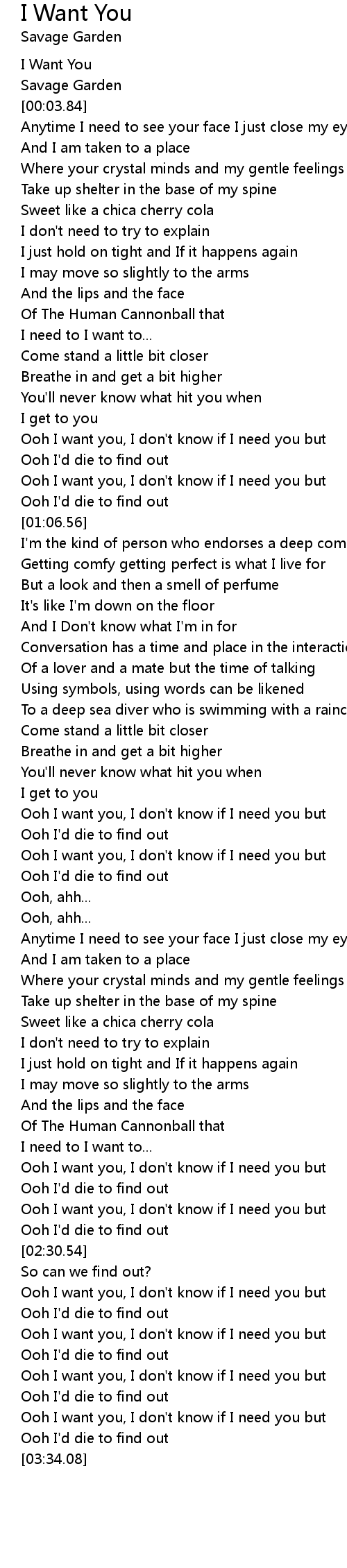 Ooh I want you, I don't know if I need you but |