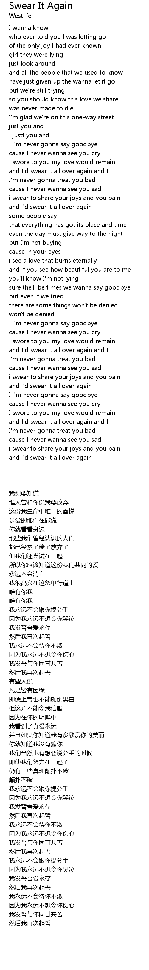 and i'd swear it all over again |