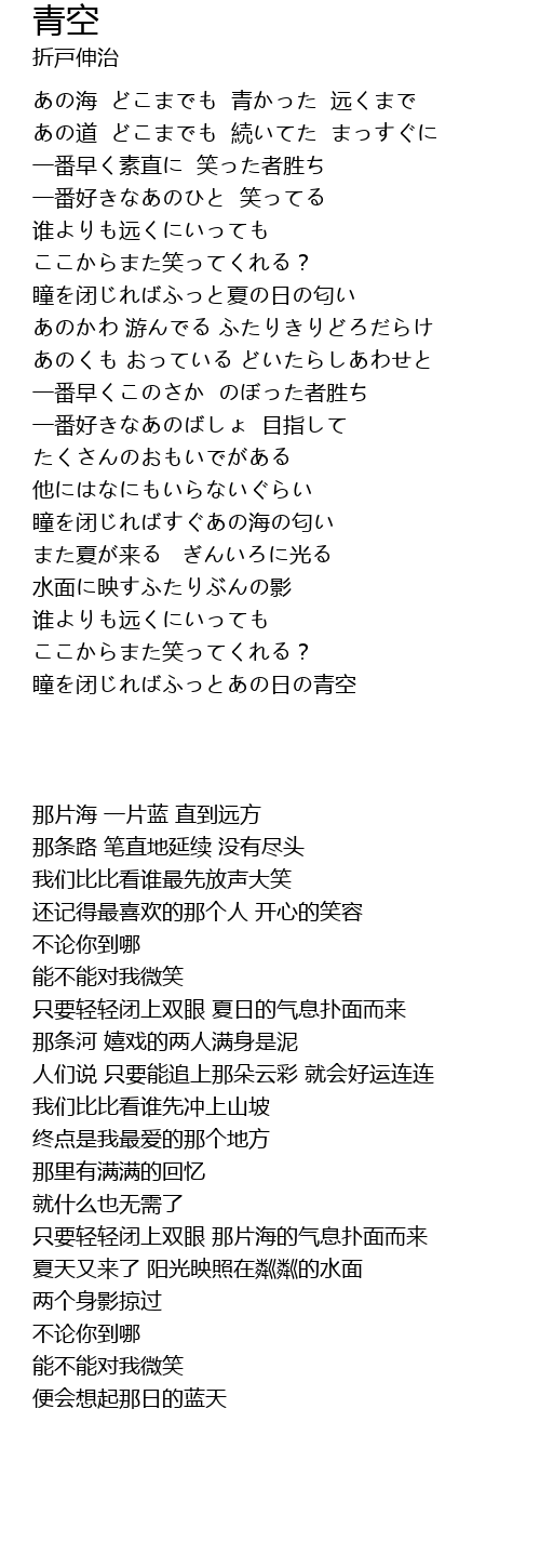 | [00:00.00] | あの海 どこまでも 青かった 远くまで |