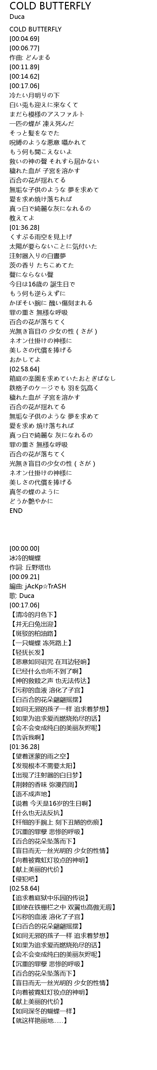 | [00:00.00] | COLD BUTTERFLY |