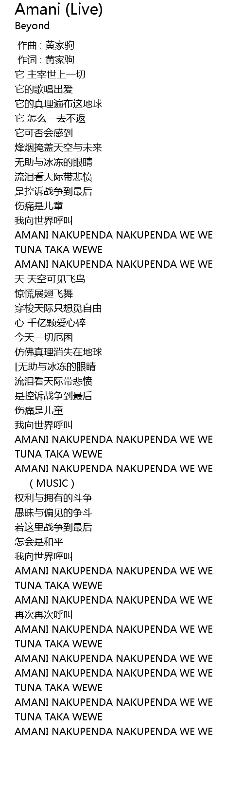 | [02:59.72] | AMANI NAKUPENDA NAKUPENDA WE WE |