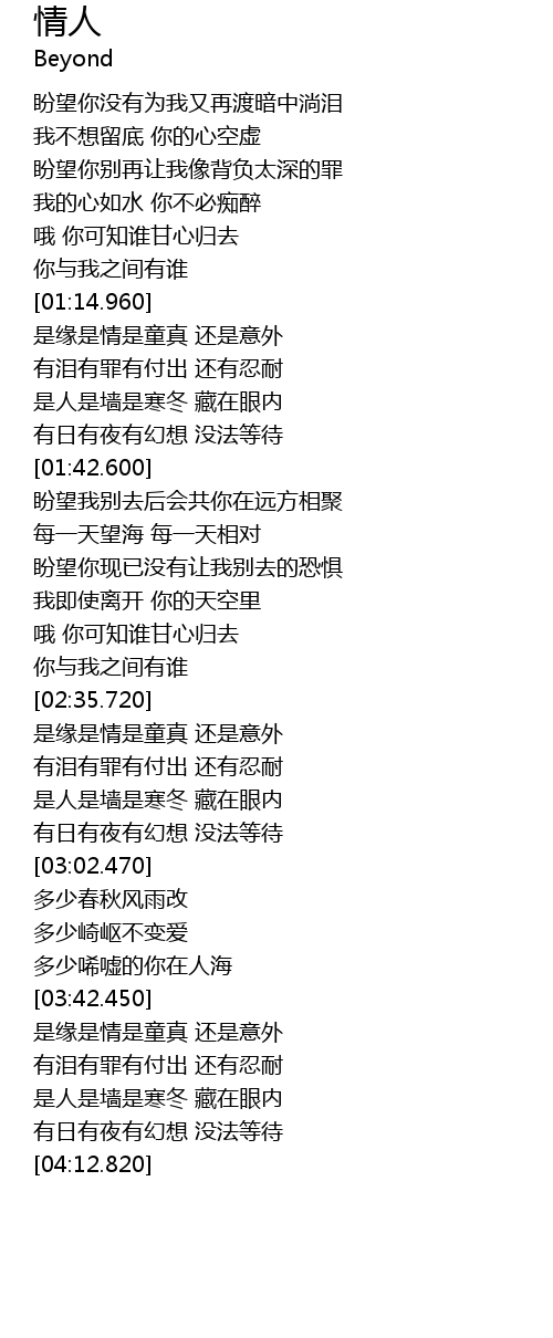 | [01:16.250] | 是缘是情是童真 还是意外 |