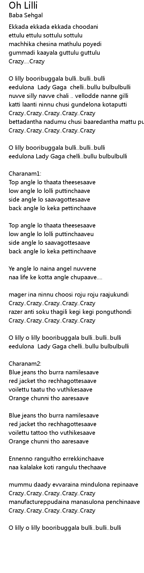 O lilly o lilly booribuggala bulli..bulli..bulli |