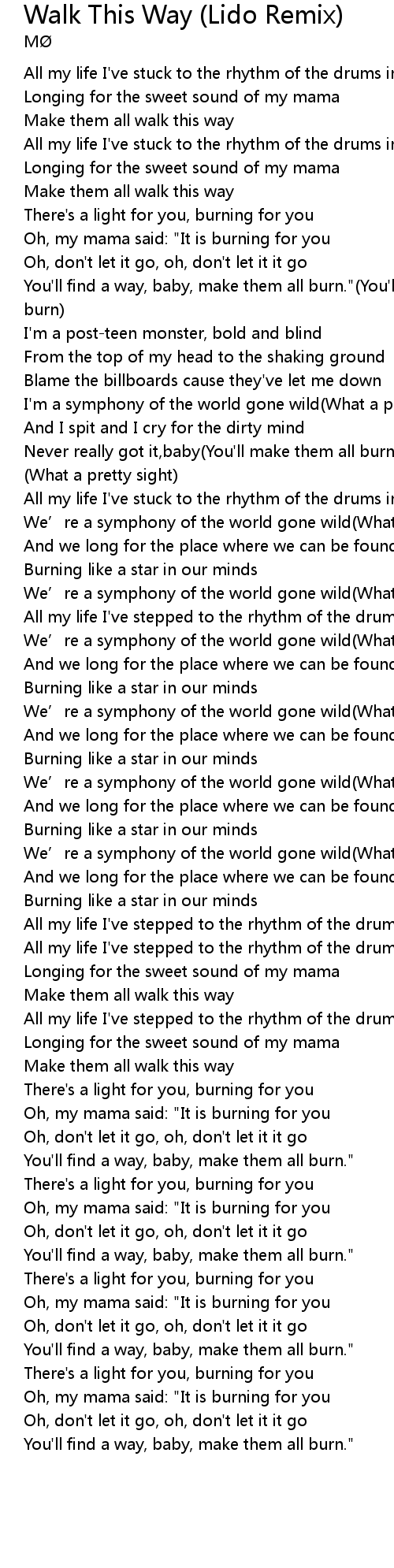 | [00:24.54] | Oh, my mama said: "It is burning for you |