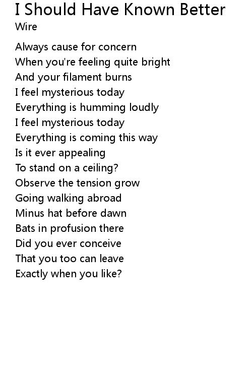 | Song | I Should Have Known Better |