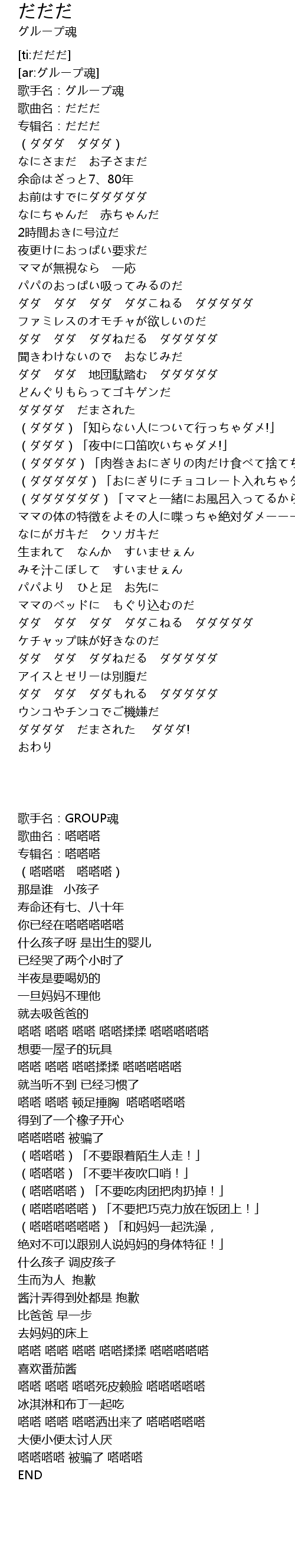 | [00:02.492] | 歌曲名:だだだ |