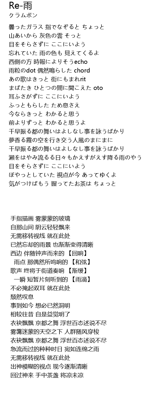 | [01:16] | 雨粒のdot 偶然鳴らした chord |