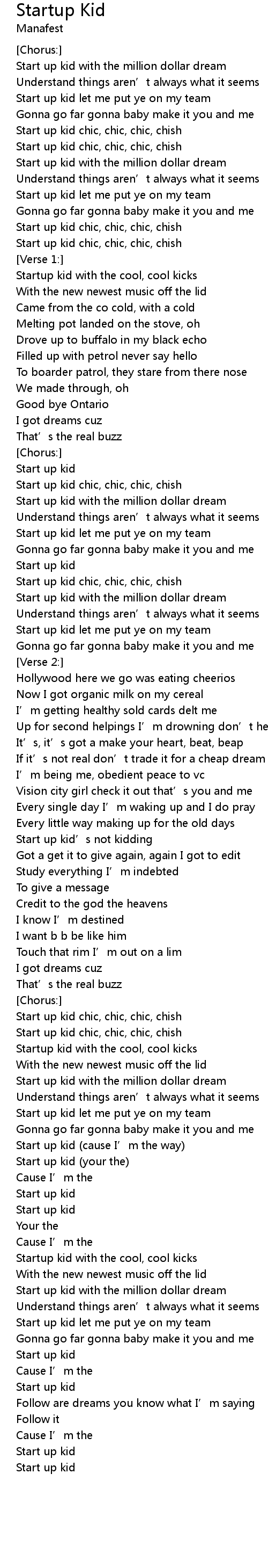 | Start up kid (your the) | |