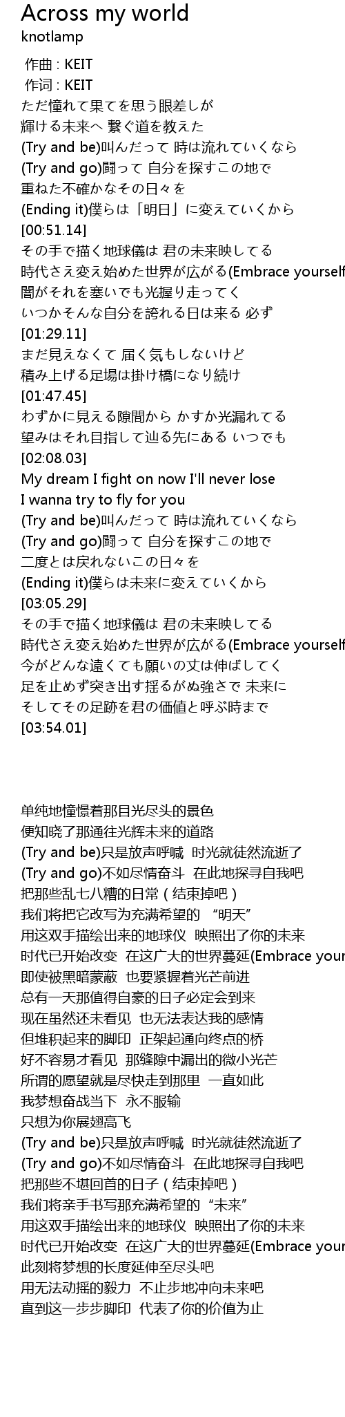 | [03:05.53] | その手で描く地球儀は 君の未来映してる |