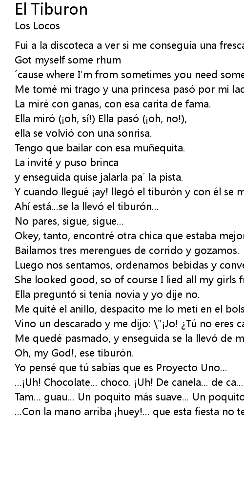 | Y cuando llegue ay! llego el tiburo n y con e l se me fue. | |