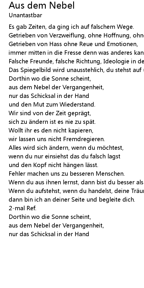 | Song | Aus dem Nebel |