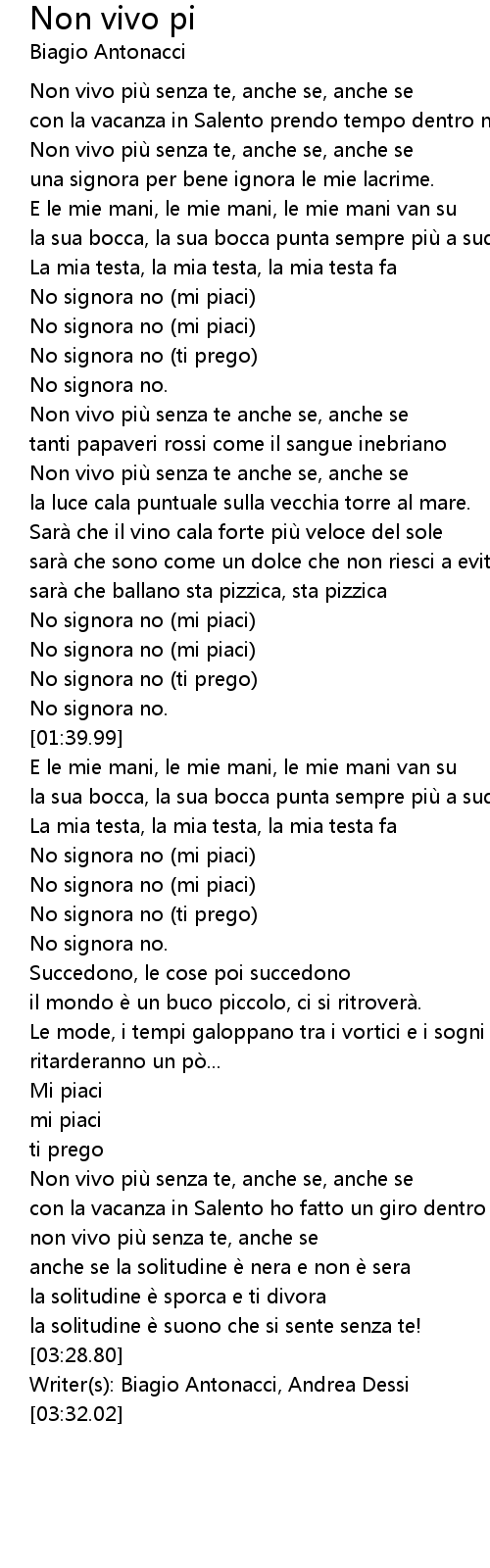| [03:30.23] | Writer(s): Biagio Antonacci, Andrea Dessi |