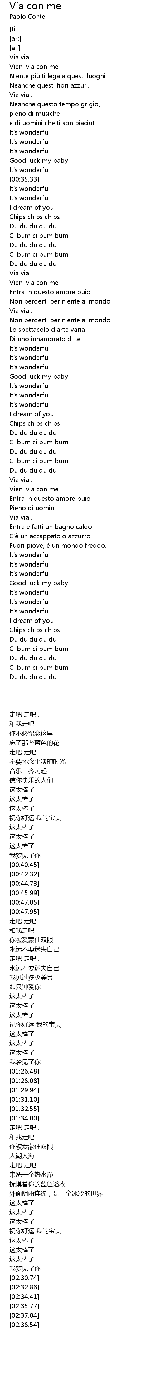 | [02:15.60] | Fuori piove, è un mondo freddo. |