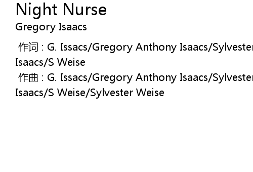 | [00:00.000] | 作词 : G. Issacs/Gregory Anthony Isaacs/Sylvester Weise/Gregory Isaacs/S Weise |