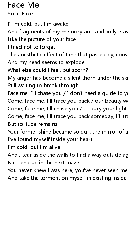 | Face me, I'll chase you / I don't need a guide to your mind | |
