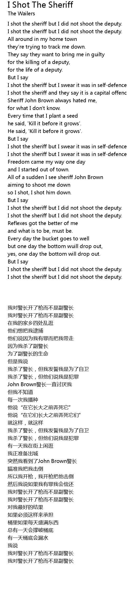 I shot the sheriff but I did not shoot the deputy. |