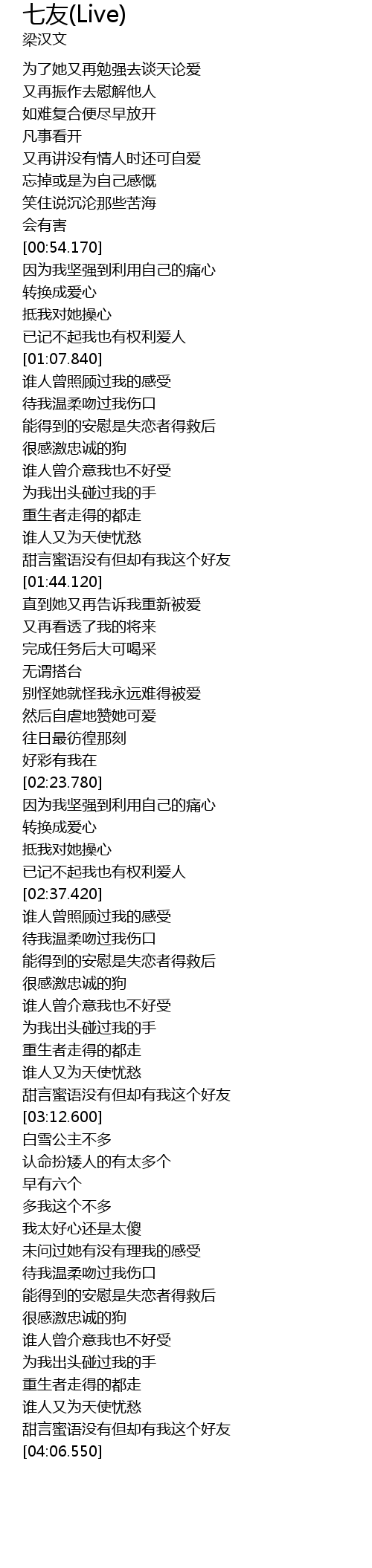 | [04:00.600] | 甜言蜜语没有但却有我这个好友 |