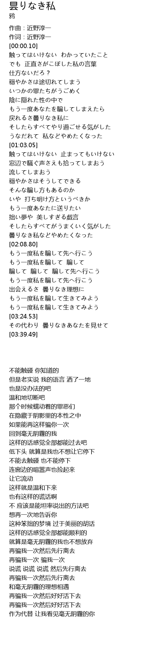 | [02:01.60] | 曇りなき私などやめたくなった |