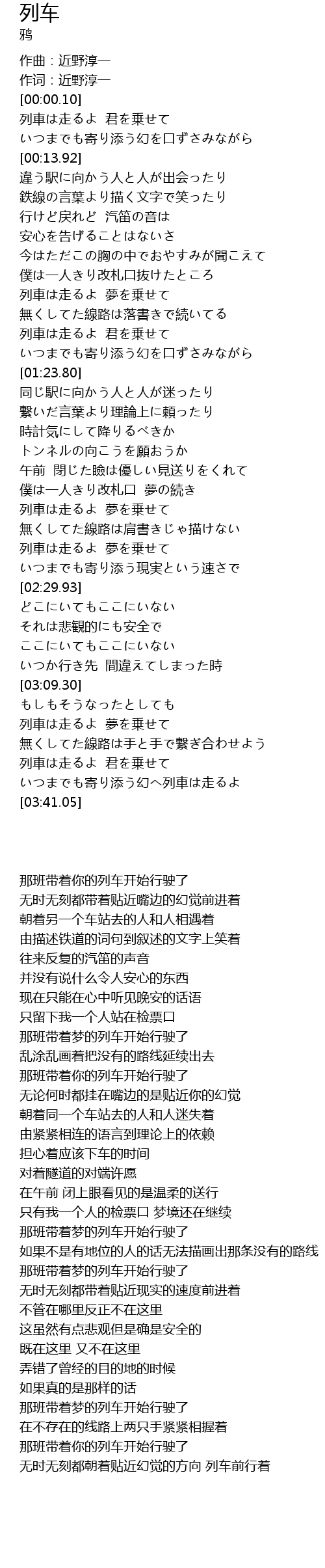 | [03:31.16] | jì tiān huàn liè chē zǒu |