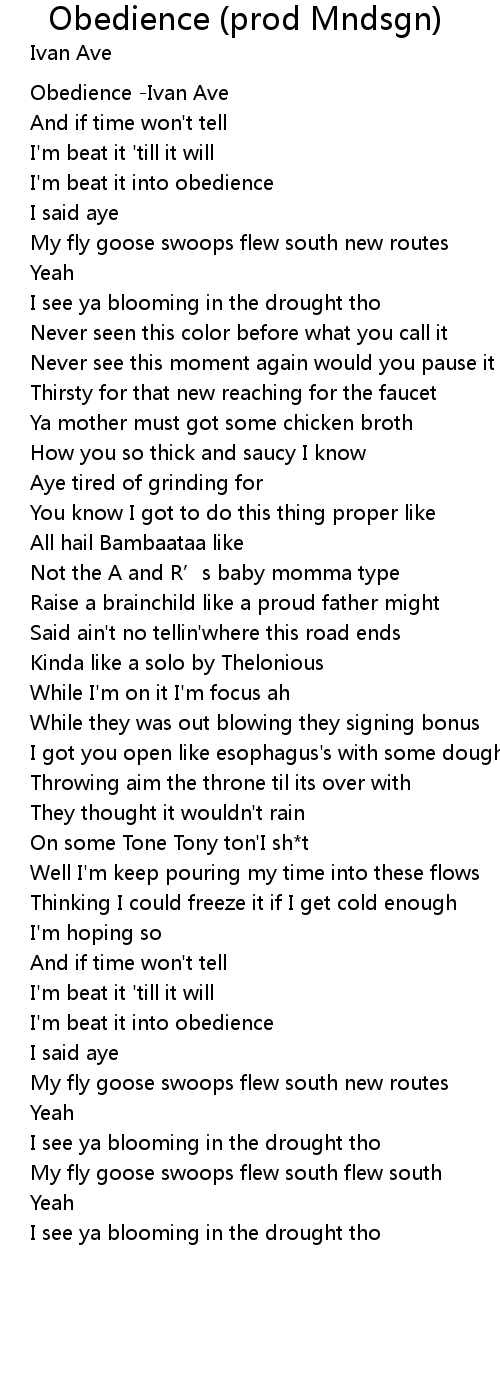 | [00:00.00] | Obedience -Ivan Ave |