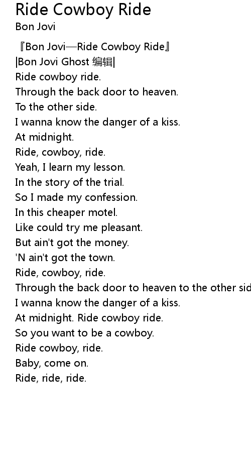 | [00:00.00] | 『Bon Jovi—Ride Cowboy Ride』 |