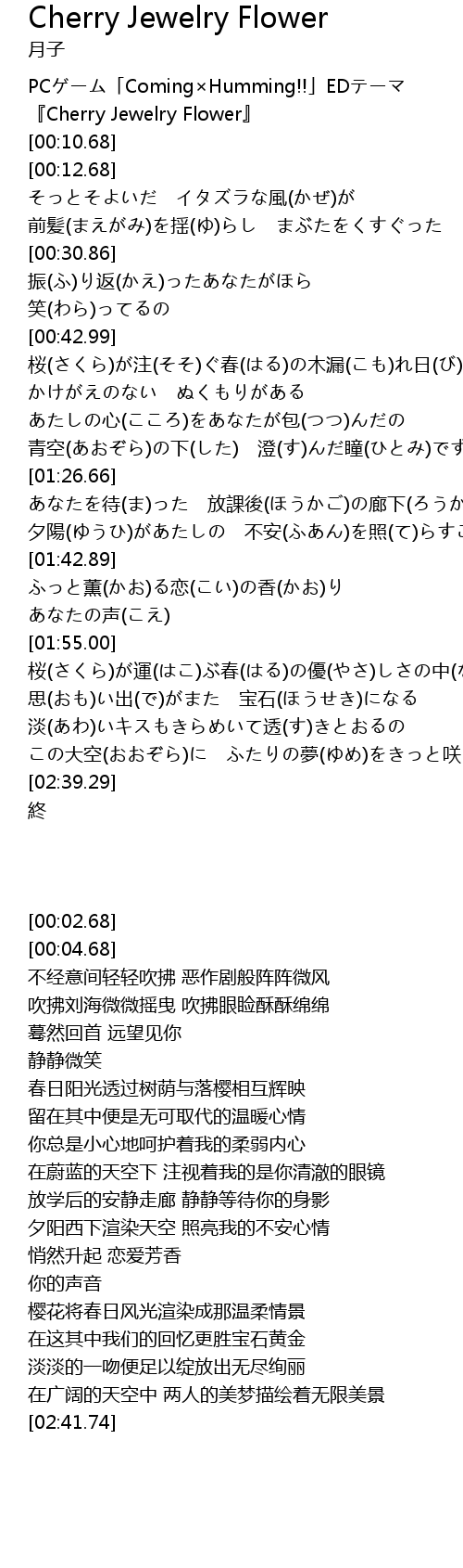 | [00:04.68] | 『Cherry Jewelry Flower』 |