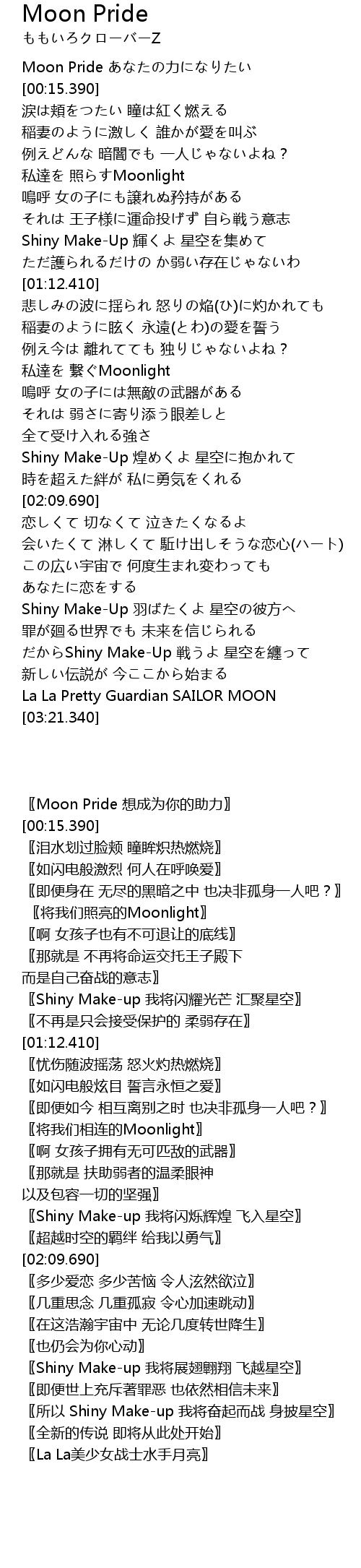 | [00:09.710] | Moon Pride あなたの力になりたい |