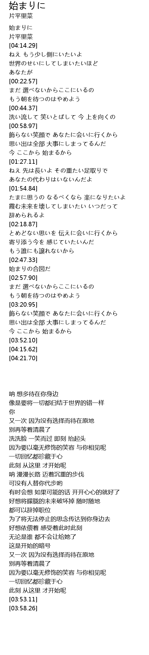 | [03:58.26] | 片平里菜 |