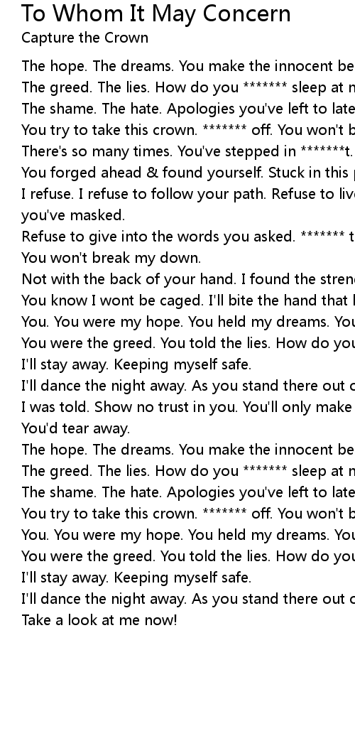 You try to take this crown. ******* off. You won't break me. You won't break me. |