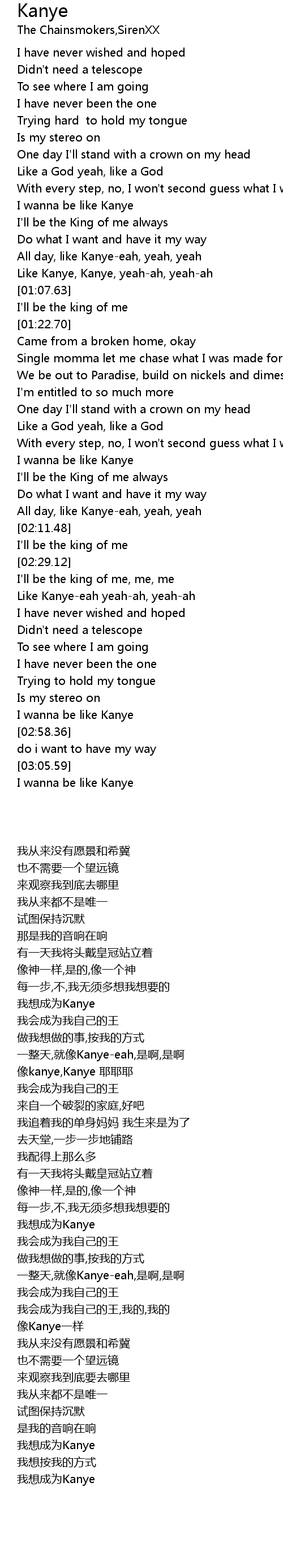 | [00:36.18] | I wanna be like Kanye |