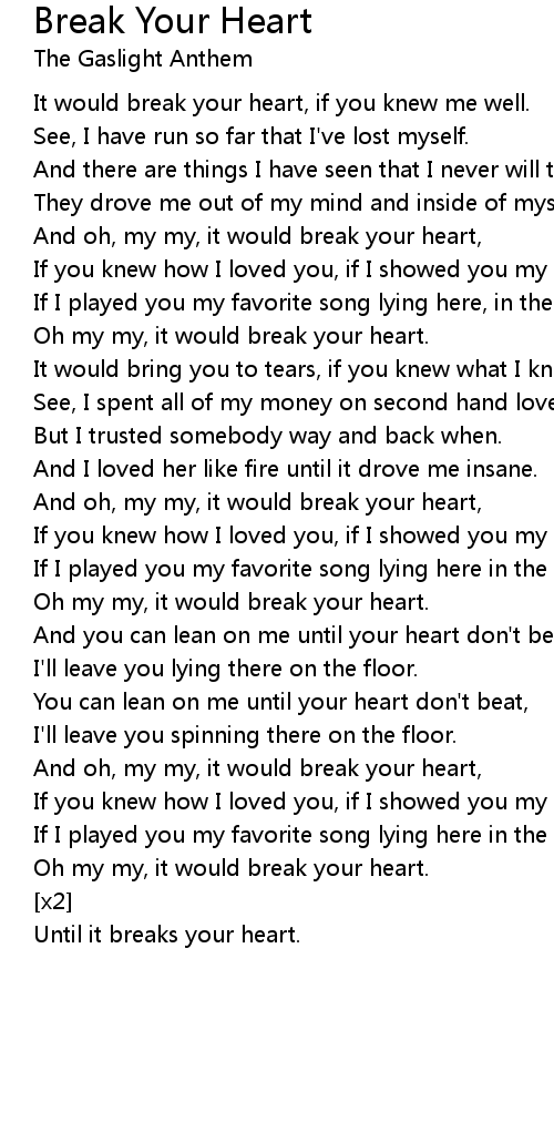 Oh my my, it would break your heart. |