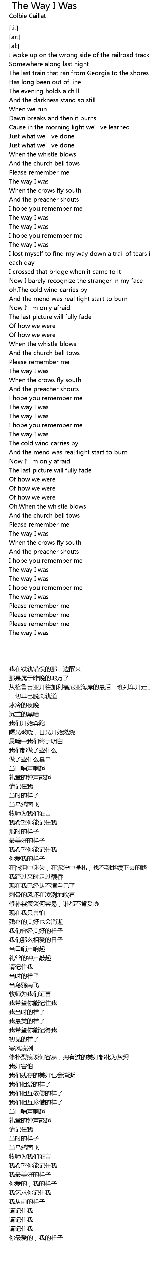 | [01:08.00] | The way I was |