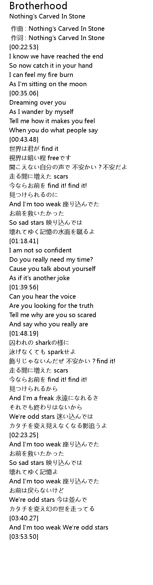 | [03:40.84] | And I'm too weak We're odd stars |