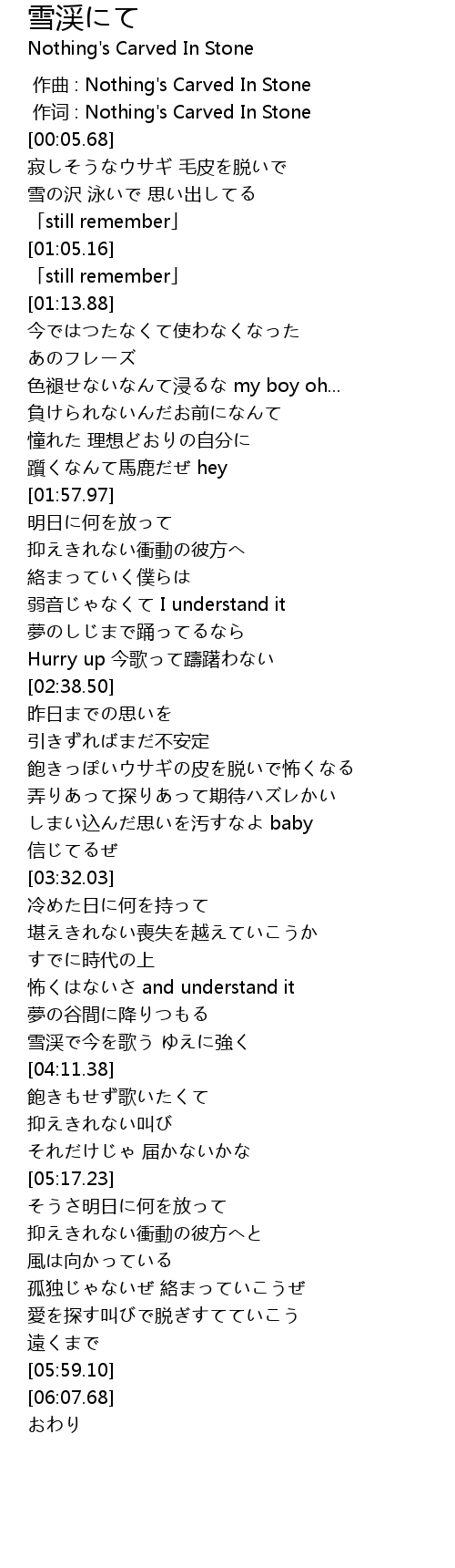 | [00:00.00] | 作曲 : Nothing's Carved In Stone |