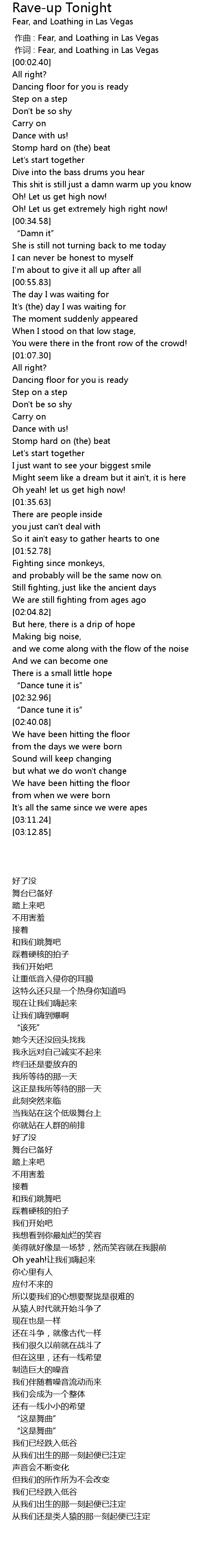 | [00:00.680] | 作词 : Fear, and Loathing in Las Vegas |