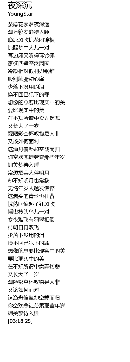 | [00:19.74] | 荼蘼花寥落夜深邃 |