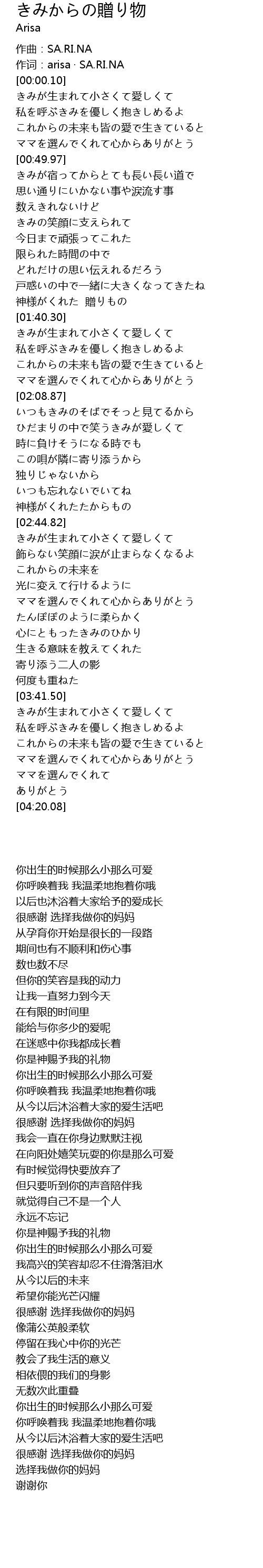 作词:arisa · SA.RI.NA |