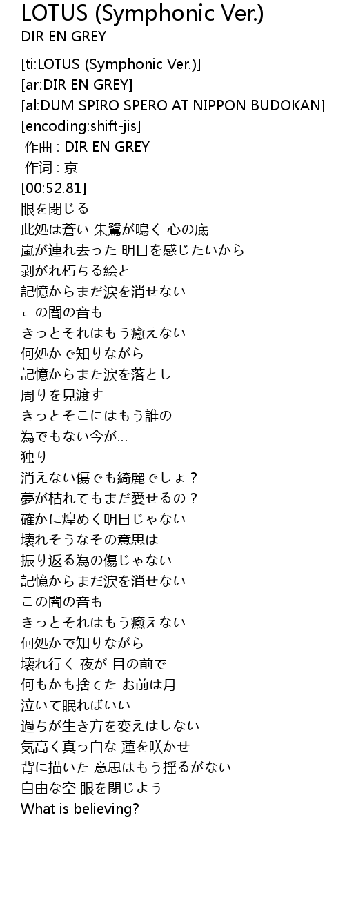 | [00:00.00] | zuò qǔ : DIR EN GREY |