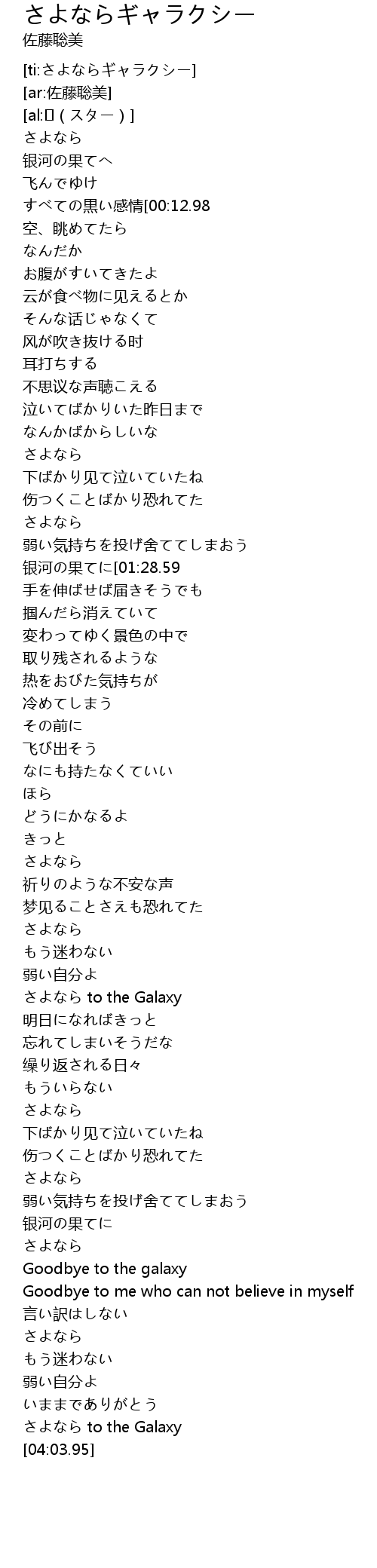 | [ti:さよならギャラクシー] | |