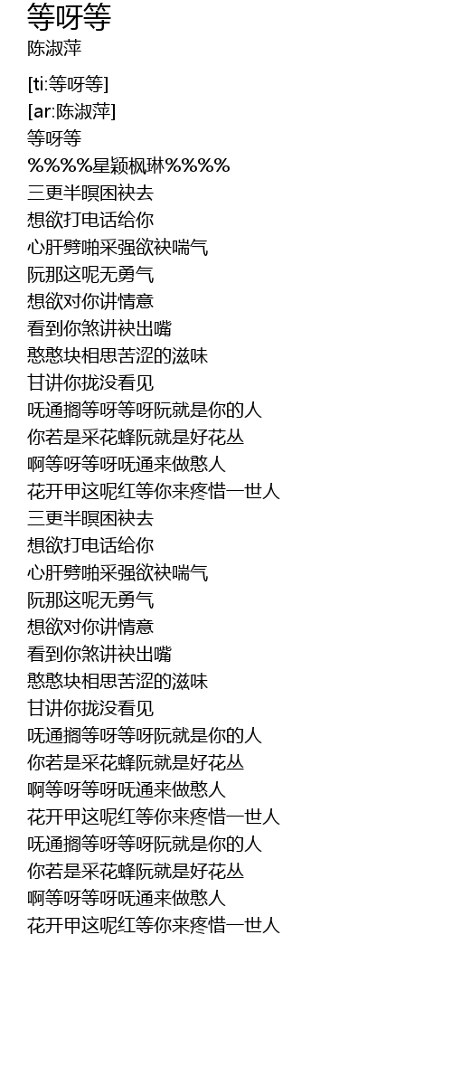 | [00:50.940] | 呒通搁等呀等呀阮就是你的人 |