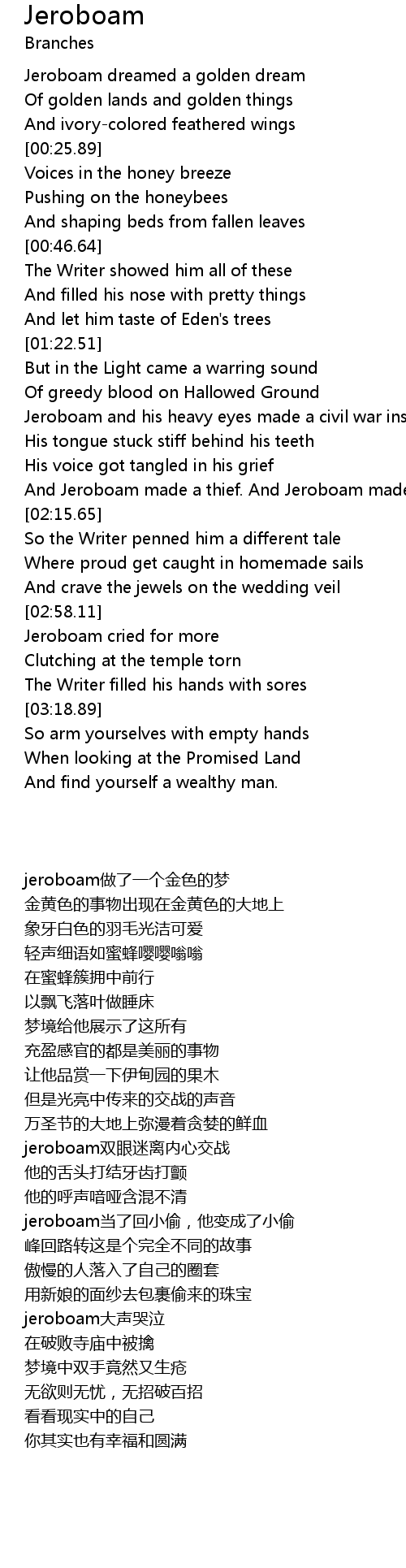 | [01:47.39] | Jeroboam and his heavy eyes made a civil war inside |