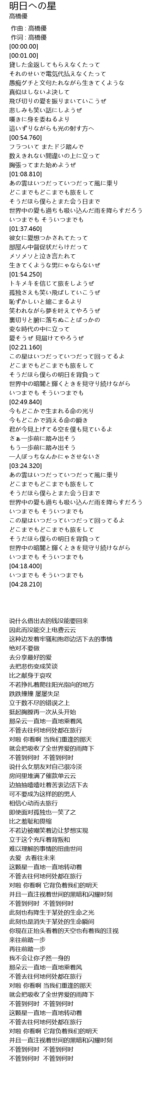 | [00:00.00] | 作词 : 高橋優 |