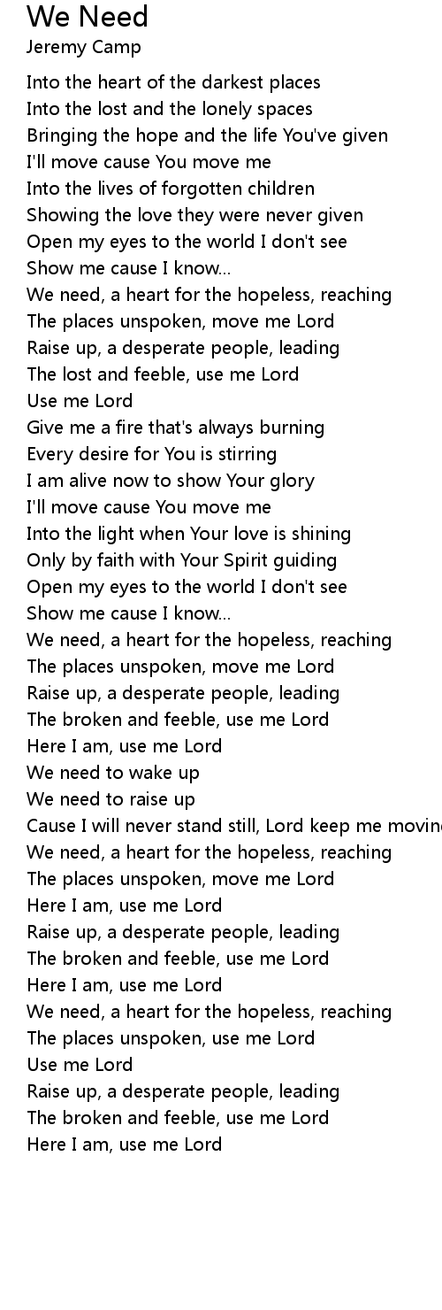 We need, a heart for the hopeless, reaching |