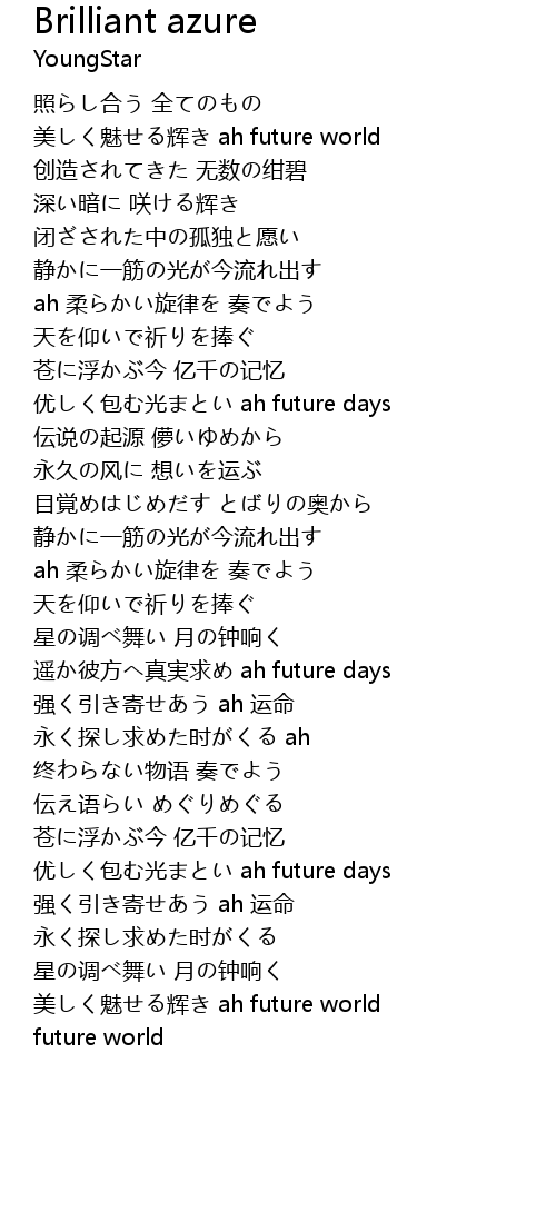 | [00:18.54] | 美しく魅せる辉き ah future world |